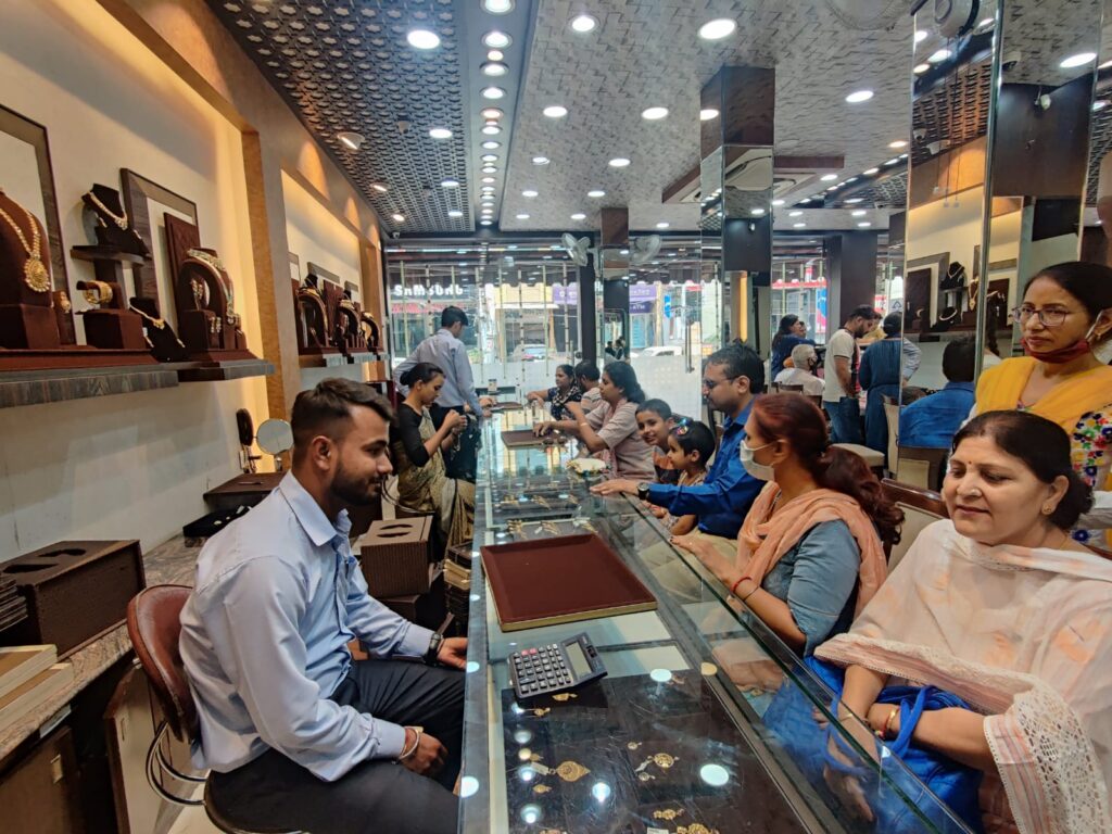अक्षय तृतीया पर्व पर बंसल ज्वेलर्स शोरूम में ग्राहकों ने की जमकर स्वर्ण आभूषणों की खरीददारी, पिछले दिनों की अपेक्षा सोने के दाम में भी रही कमी