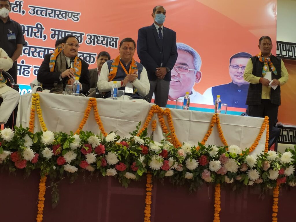 शक्ति केंद्र प्रभारी, संयोजक, मंडल अध्यक्ष, विधानसभा विस्तारक, विधानसभा प्रभारी की बैठक लेते हुए भाजपा के राष्ट्रीय अध्यक्ष जेपी नड्डा ने कार्यकर्ताओं को आव्हान किया कि पानी की प्यास, चाय की कयास और फोटो की खींच कभी पूरी नहीं होती , इसलिए इसे नियंत्रण में रखना चाहिए। नड्डा आज यहां रुद्रपुर के आनंदम गार्डन में बैठक ले रहे थे। दीप प्रज्वलित कर कार्यक्रम का शुभारंभ करने के बाद उन्होंने कार्यकर्ताओं से बारी बारी परिचय प्राप्त किया। उन्होंने कार्यकर्ताओं के जोश और उपस्थिति पर प्रसन्नता जाहिर करते हुए कहा कि यह संवाद कार्यक्रम नहीं लग रहा बल्कि एक सभा लग रही है। उन्होंने कार्यकर्ताओं की राय जानी कि जिस तरीके से भाजपा सरकार जो कार्य कर रही है उसको निरंतर जारी रखा जाए। उन्होंने कहा कि हमारा नारा 60 के पार का है तो अभी से कार्यकर्ता उत्तराखंड में सरकार बनाने के लिए जी जान से जुट जाएं। उन्होंने सभी मंडल अध्यक्षों से कहा कि वे प्रत्येक शक्ति केंद्र की बैठक लें और बूथ की चर्चा अवश्य करें। 15 दिन का होमवर्क भी उन्होंने दिया।