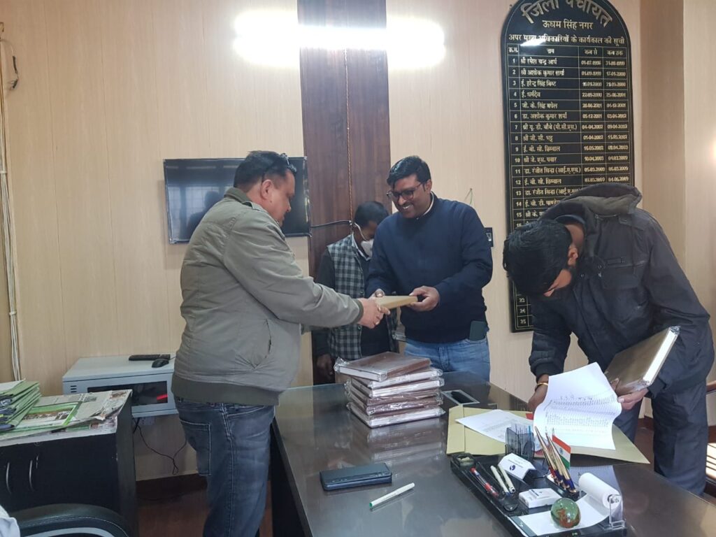 जनपद उधम सिंह नगर के जिला पंचायत में कार्यालय में अपर मुख्य अधिकारी बीसी छिम्बाल ने जिला पंचायत के सभी कर्मचारियों को नए साल की डायरी भेंट की। अपर मुख्य अधिकारी ने Newsin24 से बात करते हुए कहा कि साल 2021 में कोविड-19 की दूसरी लहर ने लोगों को काफी परेशान किया। और उस संक्रमण काल में जिला पंचायत उधम सिंह नगर ने जनपद में जनसेवा के कई बड़े काम किए। उन्होंने कहा कि अपनी टीम के साथ उन्होंने पूरे जनपद में सैनिटाइजिंग के काम कराए। मास्क वितरण कराए और लोगों को कोविड-19 के संक्रमण से बचने के लिए जागरूकता अभियान चलाए।